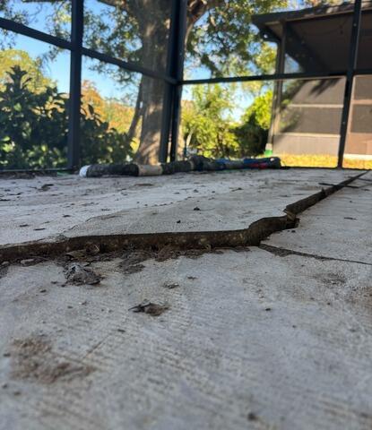 Large cracks and severe tripping hazards had developed in Jack’s concrete back patio at his home in Lake Mary, Florida, prompting him to seek an immediate repair solution that wouldn’t require a complete concrete replacement. He gave us a call at LRE Foundation Repair, and our Customer Care team quickly scheduled a free inspection with one of our expert Design Specialists.