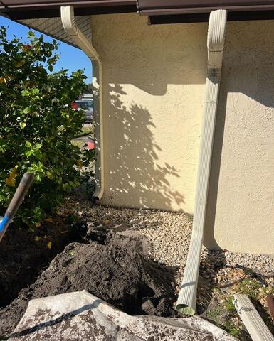 In Indialantic, Florida, John contacted LRE Foundation Repair to address recurring drainage issues around his home following heavy rainfall. Our expert Design Specialist conducted a thorough inspection and developed a custom plan to install an effective exterior drainage system. The plan included connecting the home’s gutter downspouts directly to an underground drainage pipe, effectively channeling rainwater to a relief drain instead of letting it pool around the foundation.