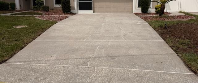 Chris’s concrete driveway at his home in Spring Hill, Florida, had become heavily damaged after soil settlement beneath the concrete caused the slabs to shift, resulting in numerous cracks and tripping hazards. Hoping to avoid having to replace the concrete entirely, Chris reached out to LRE Foundation Repair to schedule a free inspection with one of our expert Design Specialists. After assessing the driveway’s condition, our specialist created a plan to implement our Three-Part Concrete Protection System to fully repair and stabilize the concrete. Once Chris approved the plan, our team got to work. PolyLevel was injected directly beneath the driveway to carefully lift, level, and stabilize the concrete slabs. The cracks and joints were then sealed with NexusPro to prevent water intrusion and enhance curb appeal. Finally, for added protection against chipping, flaking, and staining, our team applied the SealantPro solution to the driveway’s surface. Upon completion, Chris’s driveway was completely transformed and fully repaired, with the slabs restored to their proper level and the cracks sealed, sparing him the expense of a full concrete replacement.