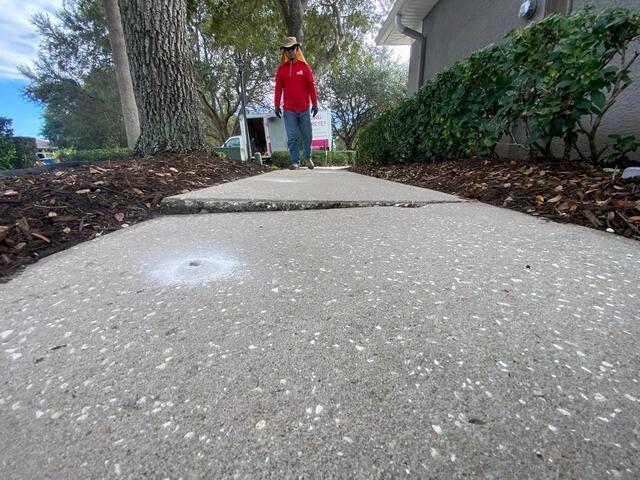 The concrete walkway at Charlie’s home in Spring Hill, FL, had gradually settled over time, resulting in an uneven surface that created multiple tripping hazards between the slabs. In need of a reliable repair solution, he reached out to us at LRE Foundation Repair to schedule a free inspection with one of our expert Design Specialists. After examining the tripping hazards, Charlie chose to have our team carefully lift, level, and stabilize the sunken concrete slabs using our PolyLevel solution.