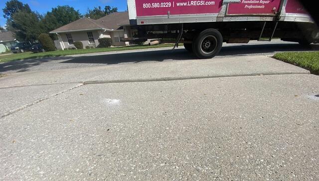 Stephen in Ocala, Florida, needed to have his concrete driveway leveled after soil settlement had caused one of the slabs to sink and create a significant trip hazard. After giving us a call at LRE Foundation Repair to schedule a free inspection, our Design Specialist visited his home to assess the driveway and recommended having our team lift, level, and stabilize the concrete with our PolyLevel solution. Stephen agreed, and our team soon went to work injecting PolyLevel directly beneath the slabs, successfully restoring the slab to its proper level in just a matter of minutes. Now Stephen no longer has to be concerned of potential tripping injuries, as his concrete driveway is now permanently restored to its proper, even level.