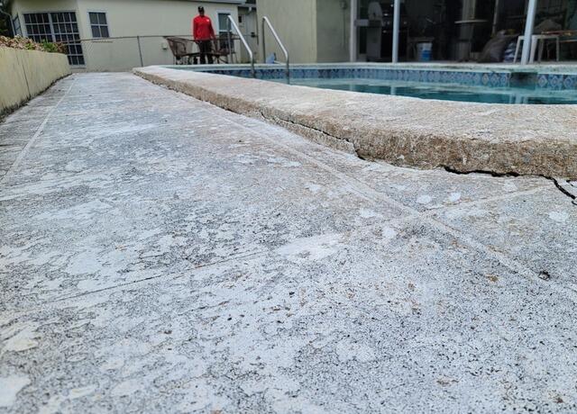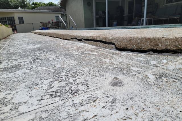 Scott’s concrete pool deck in St. Petersburg, FL, had experienced significant settlement following the impact of Hurricane Milton in October 2024. Large gaps had formed between the slabs and the exterior wall of the pool, raising concerns about both safety and further damage. While attending a local home show, Scott connected with our representative and requested a professional inspection from LRE Foundation Repair.