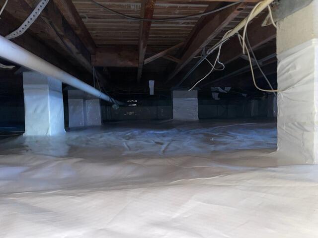 During the inspection, elevated moisture and humidity levels were discovered, contributing to the unpleasant odor. Our specialist recommended installing the CleanSpace Crawl Space Encapsulation System to protect the crawl space from moisture damage and mold growth. After reviewing and approving the plan, our team sealed the crawl space with the CleanSpace moisture barrier and installed a specialized dehumidifier to keep the air clean and dry.